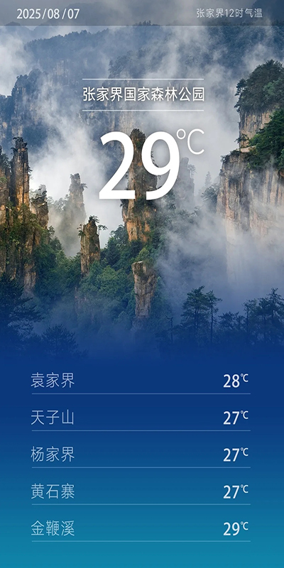 張家界景區(qū)今日天氣預報我市處于副高邊緣晴天間多云有陣雨或雷陣雨各大景區(qū)體感相對舒…